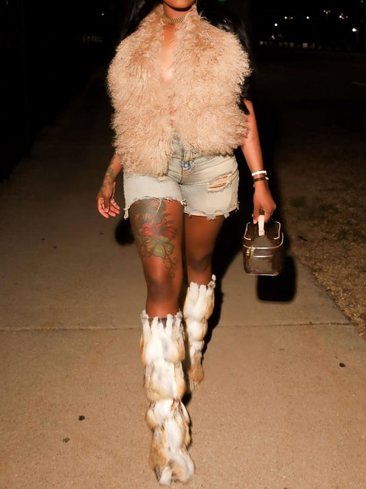 Stunning Lace-up Fur Collar Vest