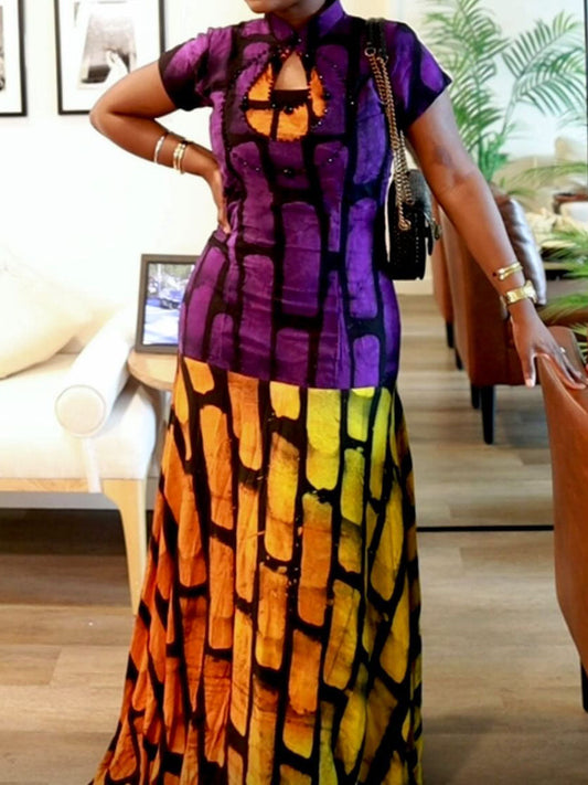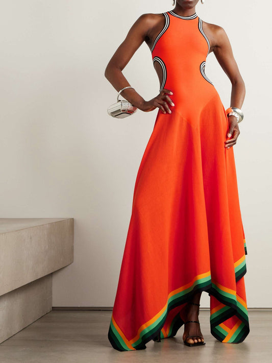 Striped Cutout Handkerchief-Hem Maxi Tank Dress