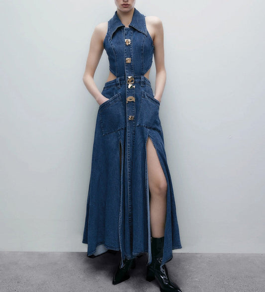 Maxi Flared Shirt Dress In Black&White Diamond Stripes