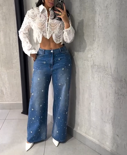 Florale Couture Bluse mit Perlenbesatz-Arabella