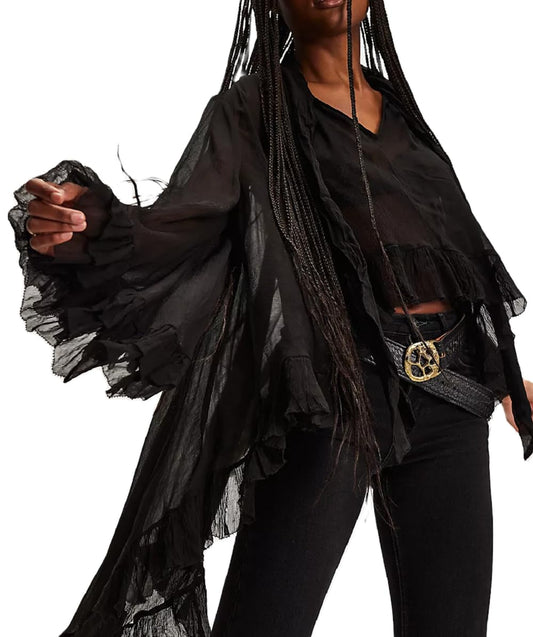 High Mock Neck Ruffle Sleeve Sweatshirt