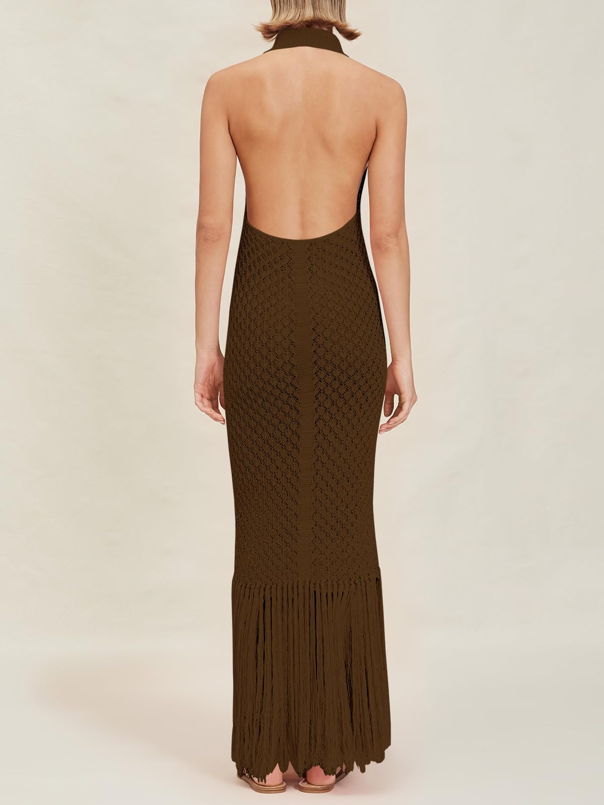 Design: Our boho swimsuit coverup for women features halter neck, hollow out, mesh knit, sexy backless, open back, sleeveless, fringe, tassel hem, v neck collared, slim fit, bodycon, see through sheer fabric, maxi length, boho style, fashionable and chic.