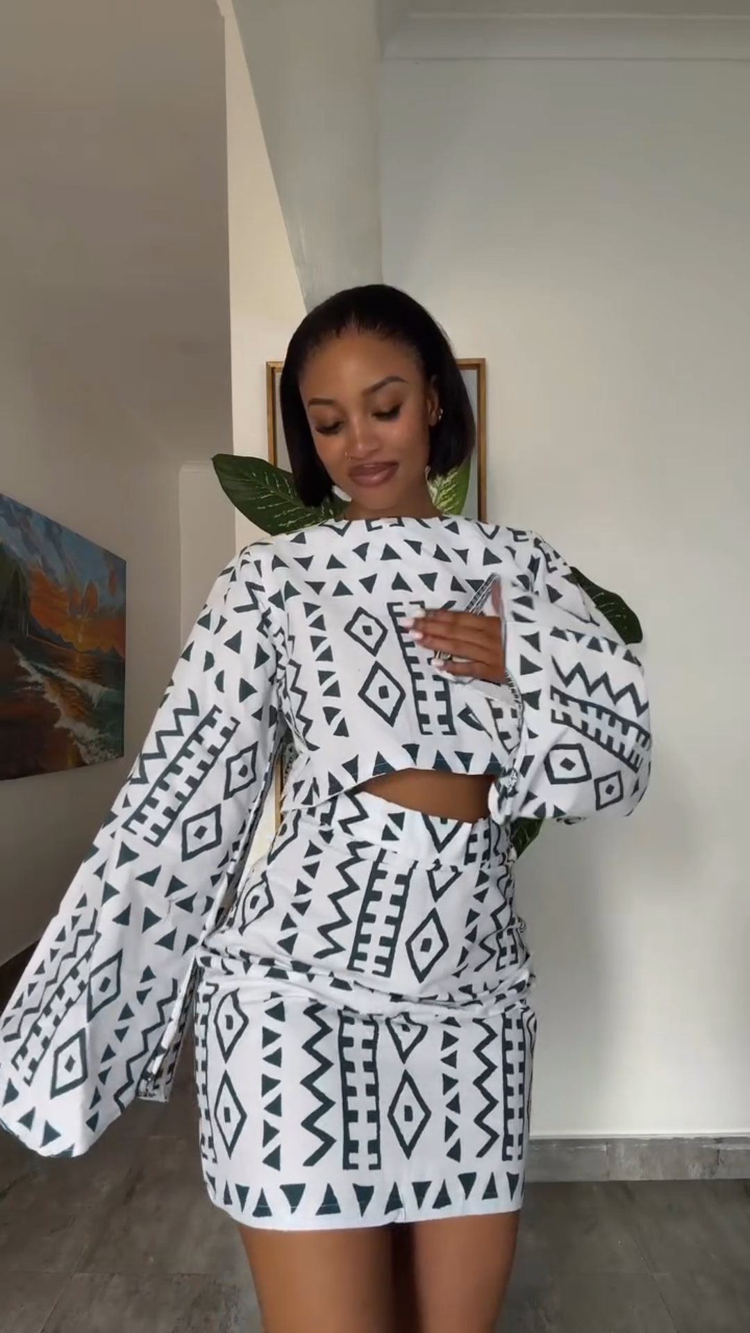 Bell Sleeve Printed Top and Skirt 2-Piece Set
