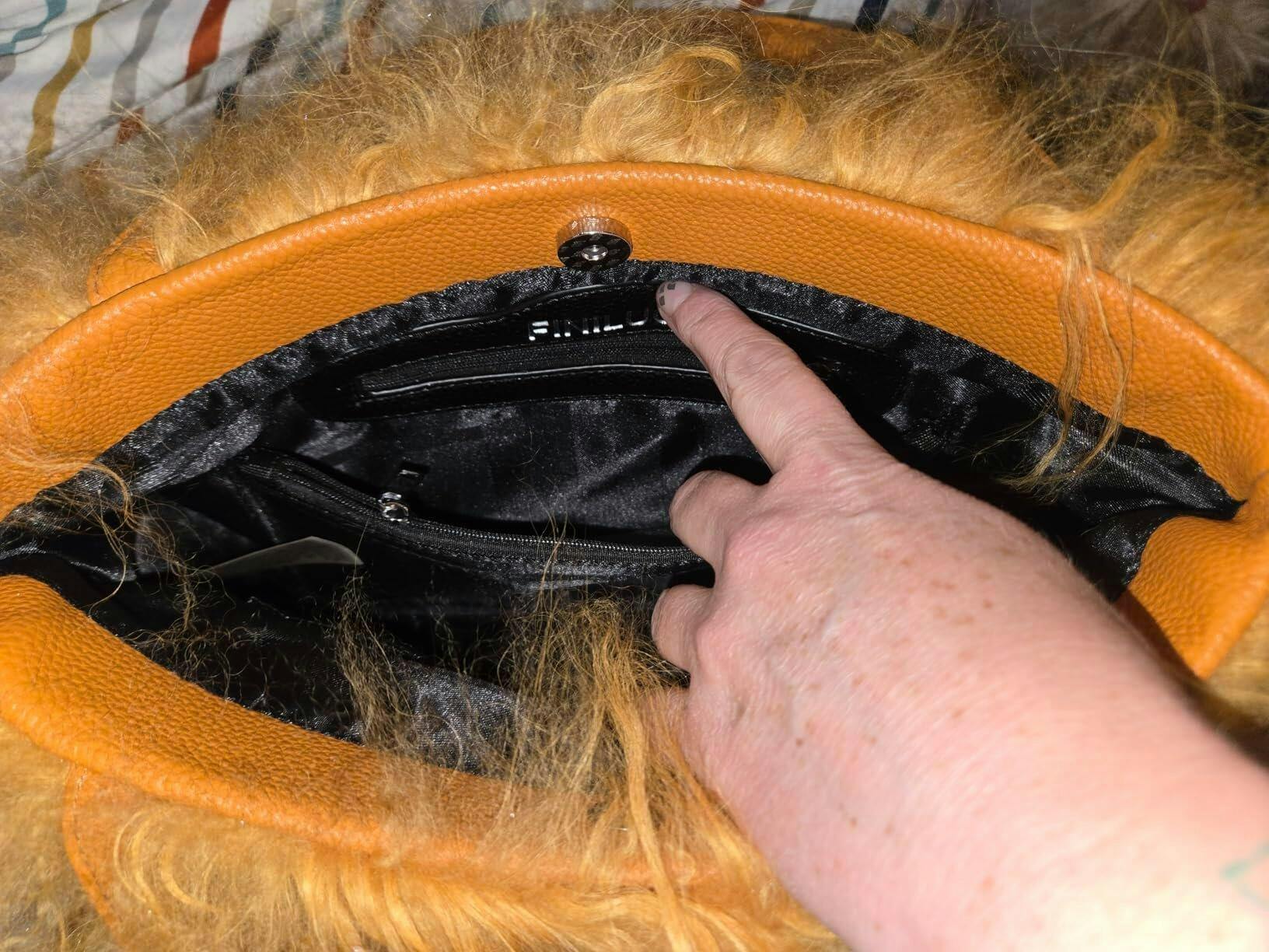 Stylish Design: A classic button close keeps your belongings secure, while the furry, double-sided design makes a bold fashion statement that will turn heads wherever you go.