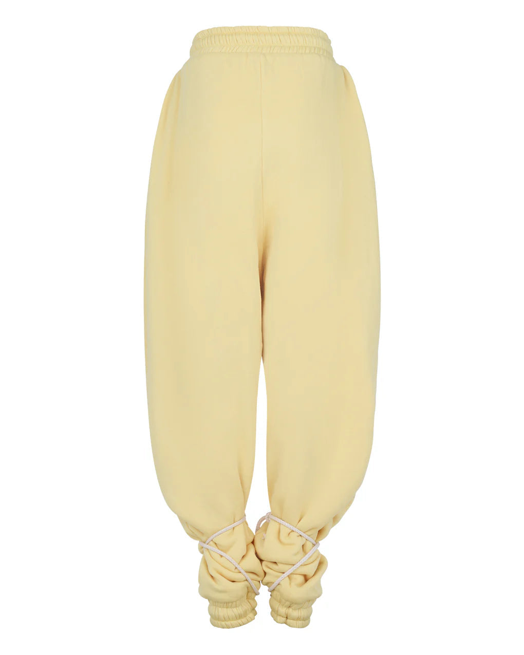 Very oversized, very cozy, cotton*super* joggers. Side pockets on both sides. Fabric is doubled for an extra thick and squishy feel. Elasticized, drawstring waistband and ankle cuffs. Cotton drawstrings at ankles and waist. 31 inch inseam on size Small with a 20 inch drop crotch. 51 inches from waist to ankle. Add one inch per size up. Item fits very oversized. Order your normal size in sweatpants for the baggy fit shown in look book photos.Model wear size Small.