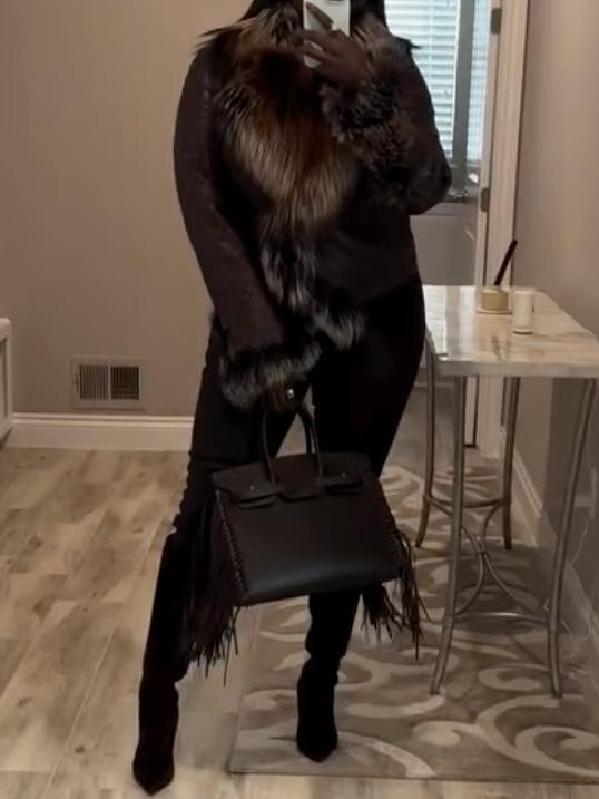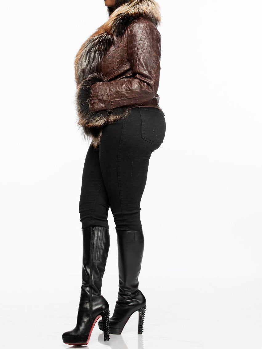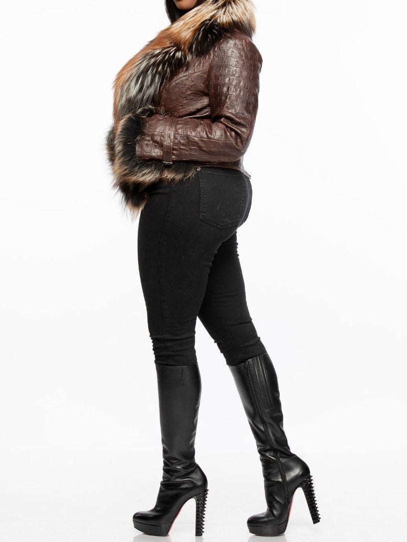 - Get exotic with the Eco-friendly Croc Embossed leather with gorgeous fox fur collar.