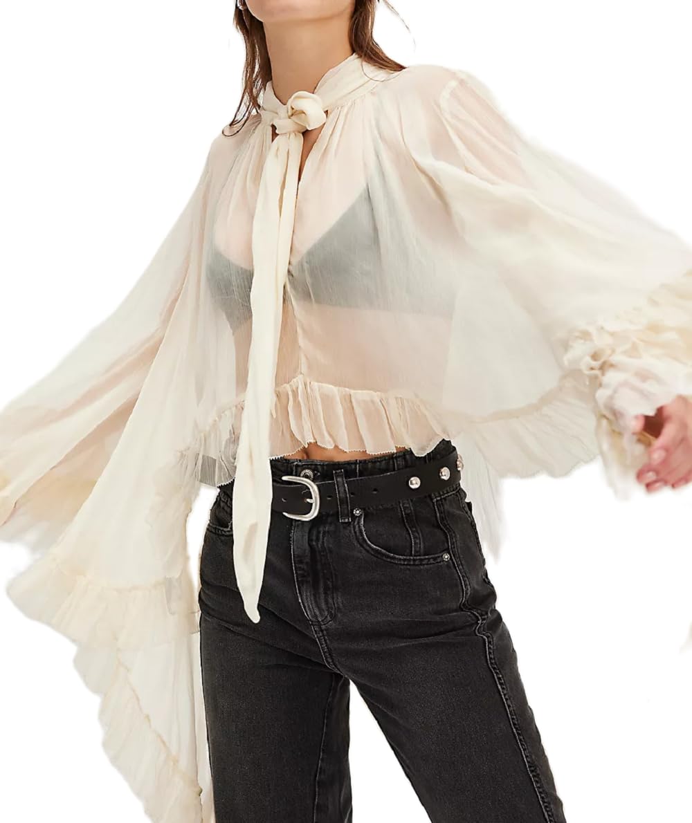 Material: Women chiffon sheer shirts tops made of polyester fiber. Soft, breathable, lightweight, skin friendly, stretchy, comfortable to wear and touch.