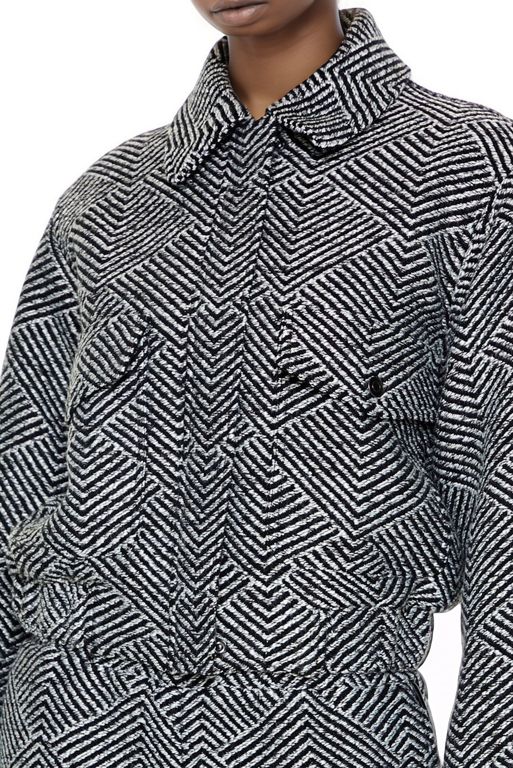 Woven jacket and shorts set with all-over herringbone pattern, chest flap pockets, long sleeves and basic collar.