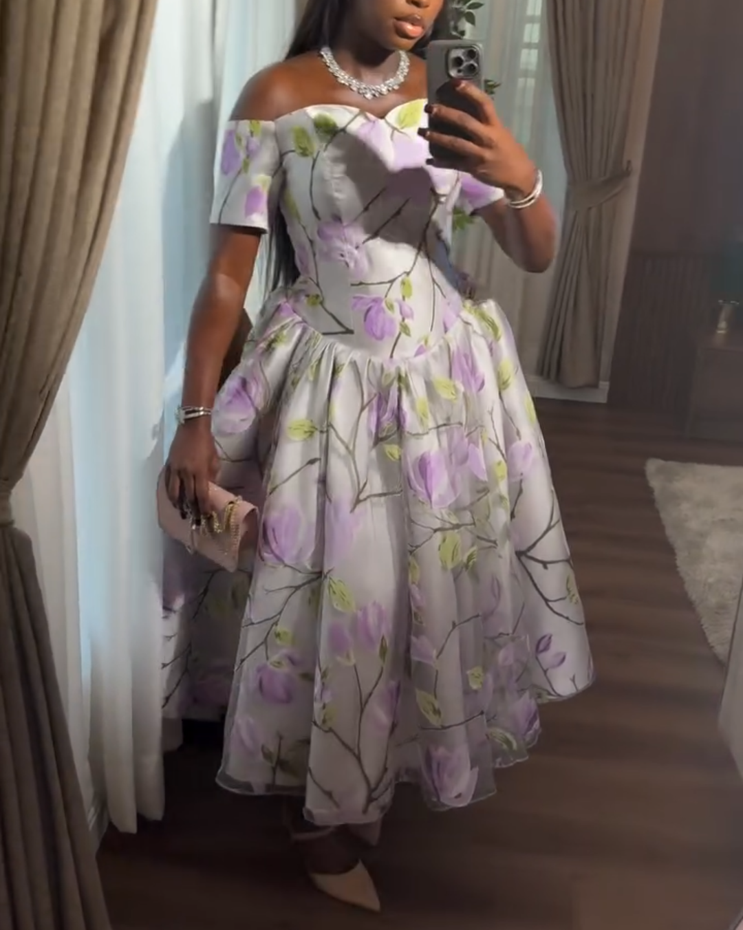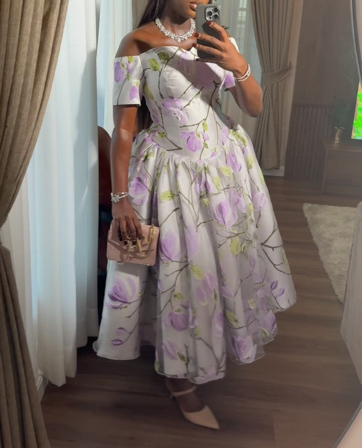 Purple Floral Off-The-Shoulder Dress