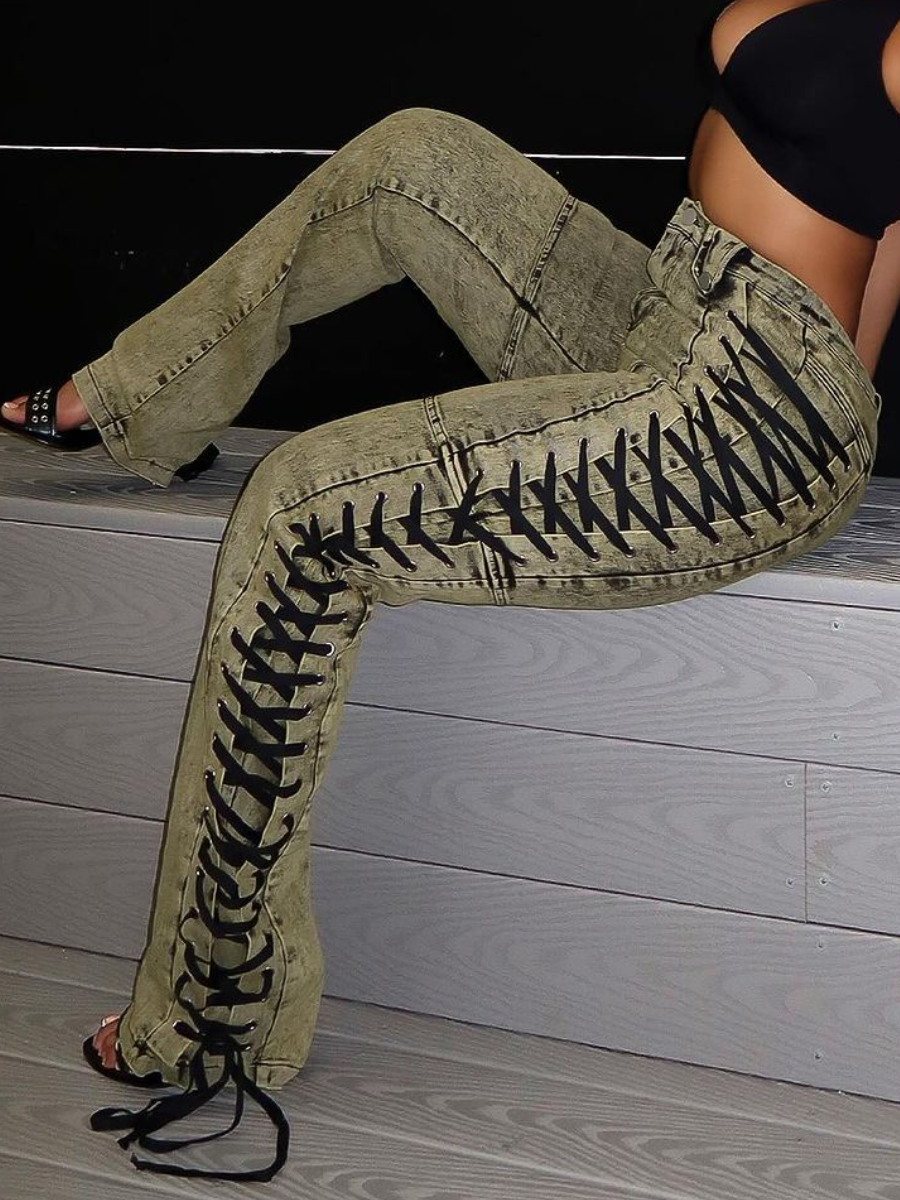 Stylish Strap Drawstring Jeans
