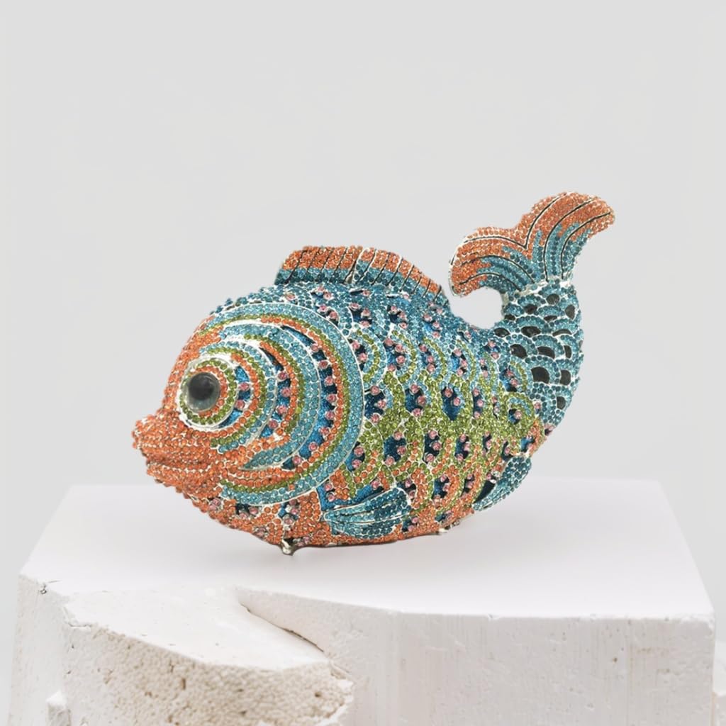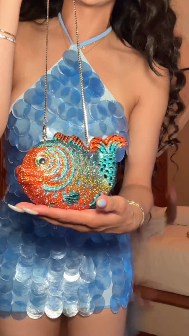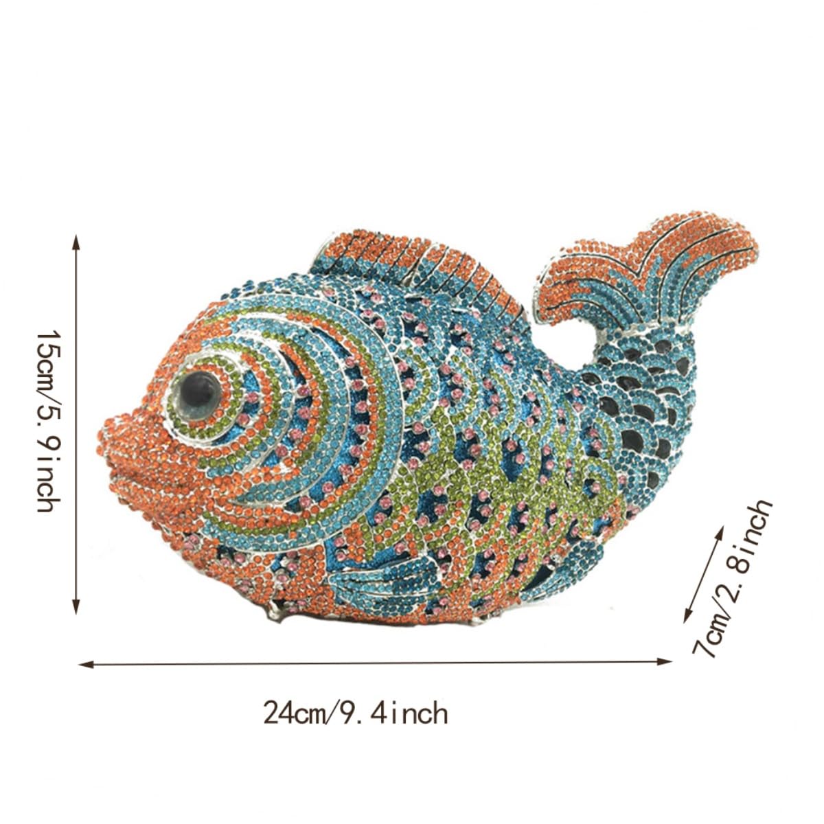 Material: Our Tngan luxury and cute fish evening clutch is made of superior hardware frame construction, the surface is full of dazzling colorful rhinestones and crystal, interior is glossy synthetic leather lining. Each hardware is well selected to ensure there are no scratch, bubble, and no rust on surface. The switch is a magnet type. The strap adopts detachable 48cm long flat bone chain.
